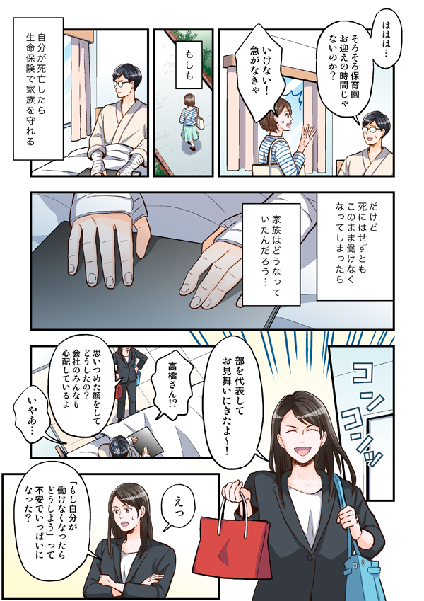 • 働けなくなってしまった場合に備えて、保険で備えることは有効である。