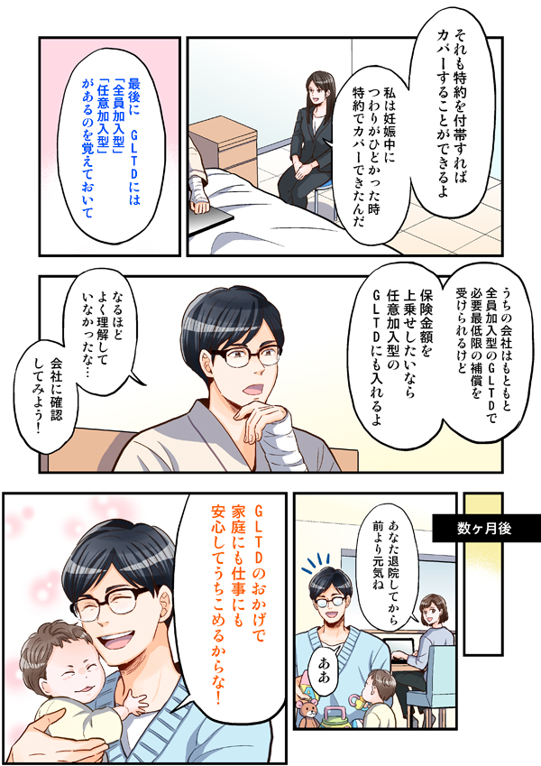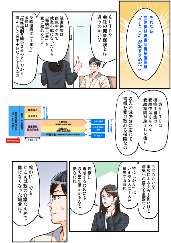 この漫画は、GLTD(団体長期障害所得補償保険)についてのお話です。