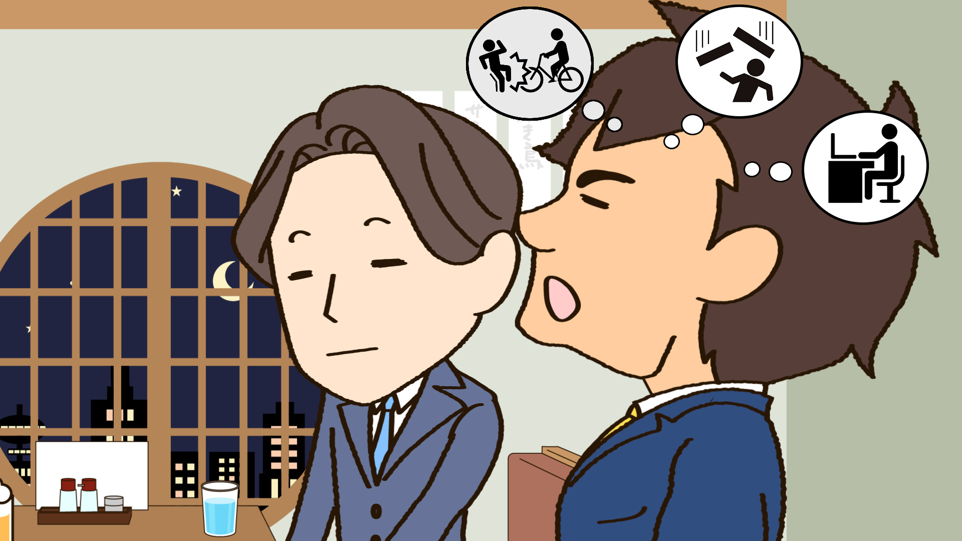 みなさんの周りにもこんな人1人はいないでしょうか?リスクに備えすぎの「リスクソナ・エルオ君」と過剰な筋トレで備える「カラダ・キタ・エルゾウ君」がついに保険に加入してリスクに備えるも・・・